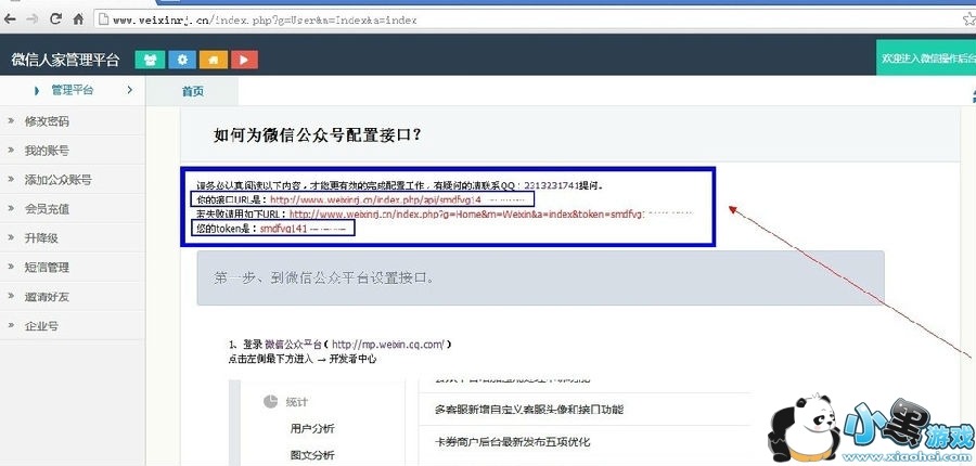 4、这个页面的红色链接是最重要的,一个是URL接口,一个是TOKEN。这里大家复制并粘贴到公众平台-->开发者中心即可。这个地方有不懂的可以看页面的介绍,很详细的都配有图文。