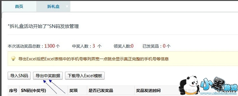 6、存后就可以测试了,点击SN码管理可以查看“用”户数据,支持Excel导出。