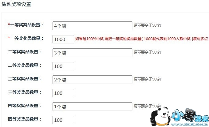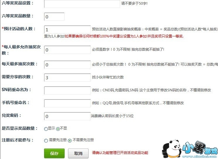 5、填写奖项设置,注意红色的提示语,SN码,手机号等不懂可以空着不填。