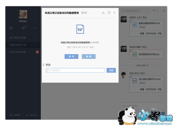 针对笔记类型的资料,可以直接进行编辑,每个人的修改都会形成新的版本,且可以随时对比两个版本之间的区别。