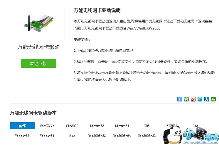 如果你不想因为修复一个无线网卡驱动而去安装驱动人生的话,此方法是最适合不过的了。打开驱动人生的驱动下载中心:http://drivers.160.com/,找到万能无线网卡驱动下载。下载该万能无线网卡驱动,直接双击运行该安装包中的exe文件即可快速解决无线网卡驱动问题。