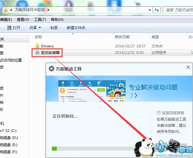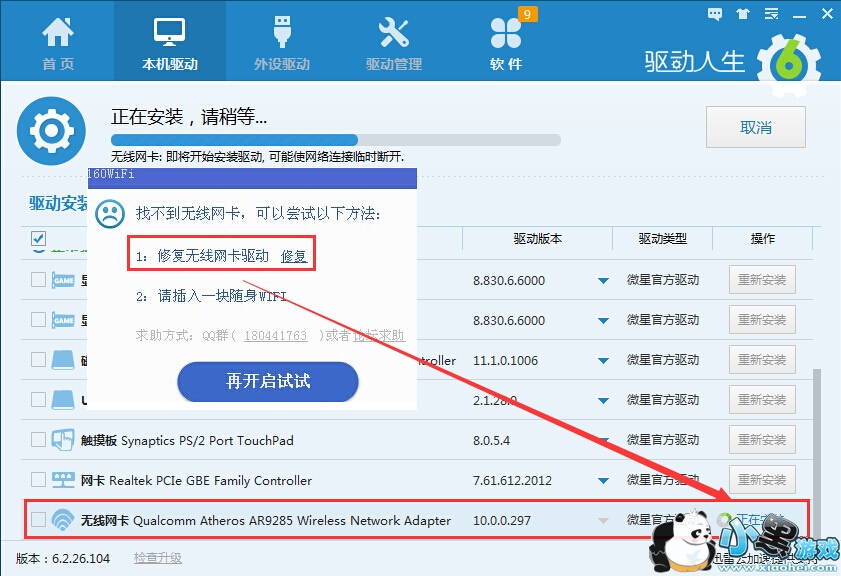 将万能无线网卡驱动安装包下载到本地,解压。打开“驱动安装器”,点击开始,如果你的无线网卡驱动需要修复,它就会自动进行修复,修复完成退出即可。
