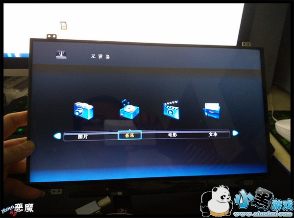 连接方法很简单,连接上屏线即可,点击开机。默认进入的是U盘模式。14寸的大号MP4还是很不错的
