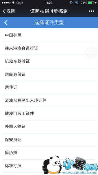 证照拍摄包括以下4个步骤:填写信息:填写办证机关所在地及证件类型(包括居民身份证、护照照片、机动车驾驶证、居住证等在内的12种证件照类型)。微信幸福照拍摄:若手机相册中有备份证件照,也可美颜上传。