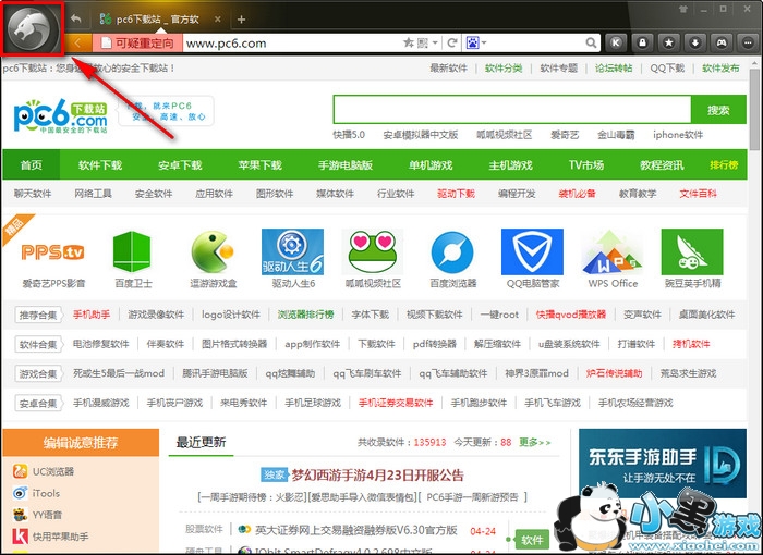 1.首先打开猎豹浏览器,找到左上角猎豹图标,点击。