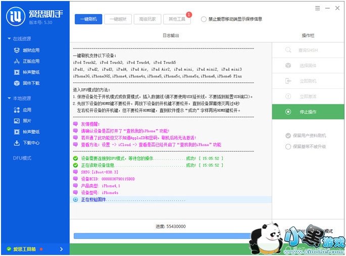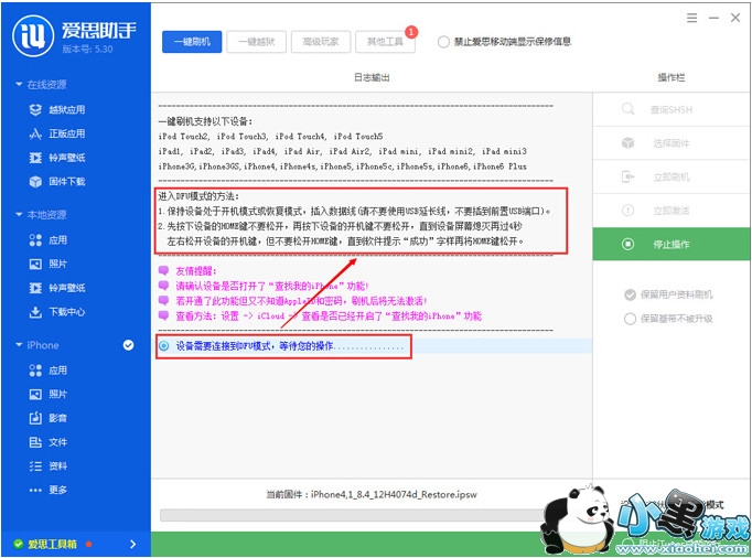 此刷机教程通用于使用爱思助手进行所有iOS 设备刷机;只需要下载不同的固件就可以了;