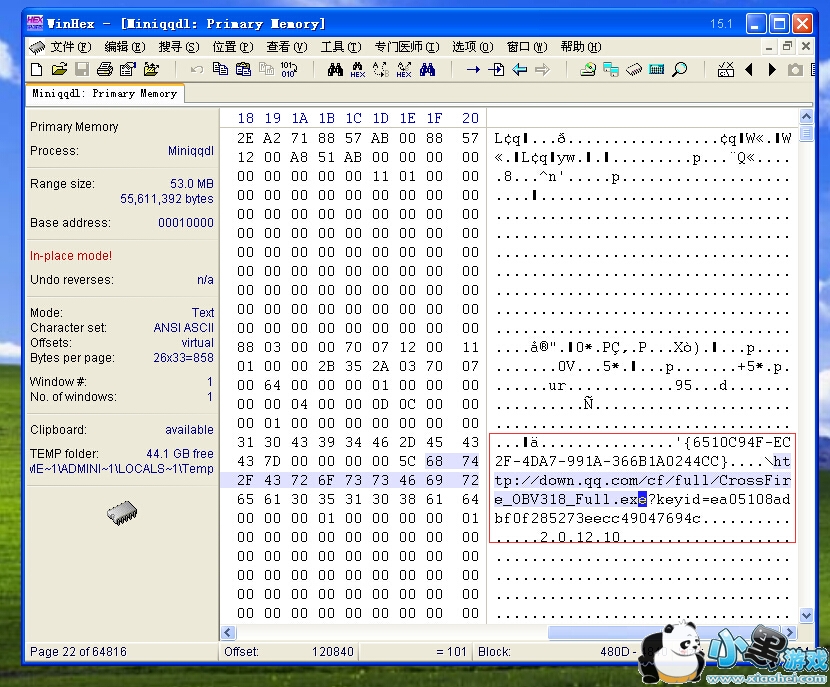 我们先用 WinHex 打开 MiniQQDL.exe 这个进程,进程PID是3340