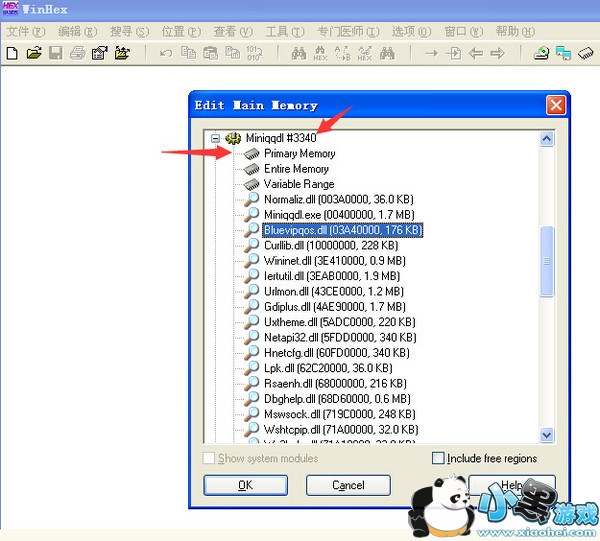 找到进程名称和 PID,点击+号展开,选择第一个 Primary Memory ,点击 OK
