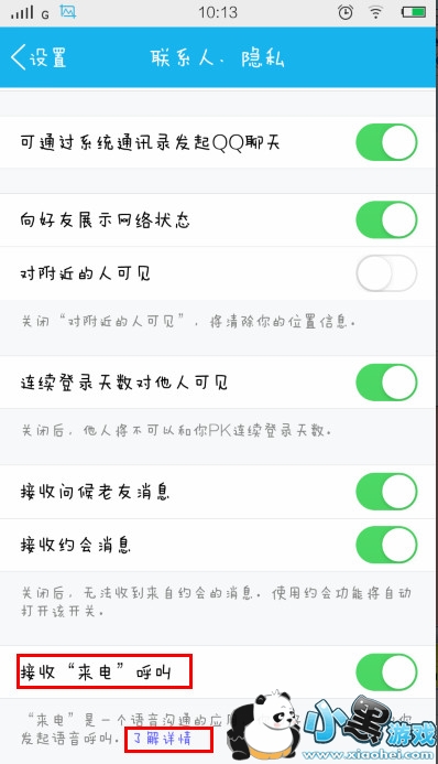 3、我们可以在最下方看见接受“来电”呼叫,我们将它打开,然后点击“了解详情”