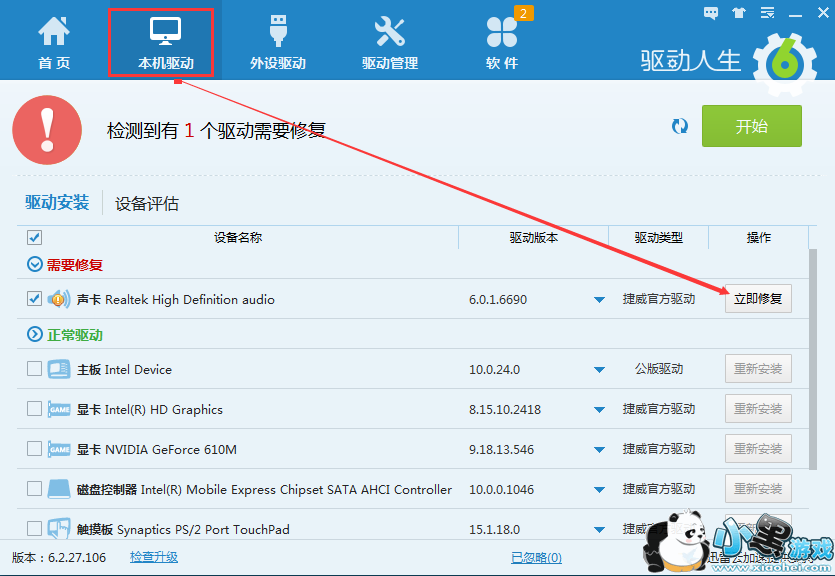 重启完成后,打开驱动人生选择本机驱动,然后点击立即修复,驱动人生就会帮你重新修复好声卡驱动,当你声卡驱动正常了,就不愁好友听不到你的QQ语音了。
