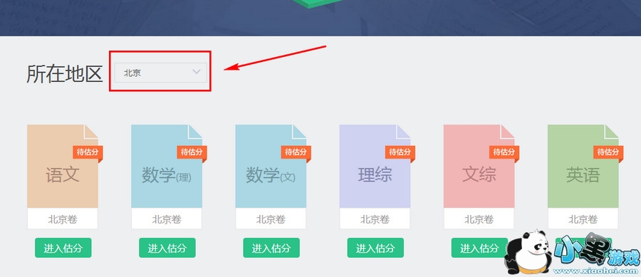 2、进入之后选择你高考的省份,然后选择你想估分的科目,点击“进入估分”