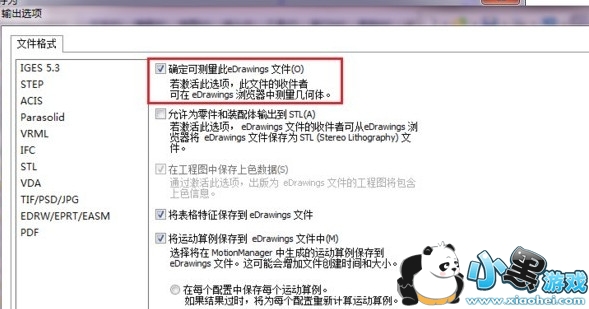 选择eDrawings如果这样直接输出的文件是没有测量的功能,需要在选项(option)进行设定