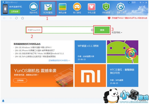 4、选择ROM既然是要刷机,那么选择一个合适的ROM尤为重要。如果已经下载好了 天语Touch3c ROM,那么直接选择 天语Touch3c 的刷机包进行刷机。如果没有ROM的话,点击刷机大师客户端的“ROM基地”模块,然后搜索机型的关键字“天语Touch3c”,点击进去就可以见到 天语Touch3c 的ROM包。