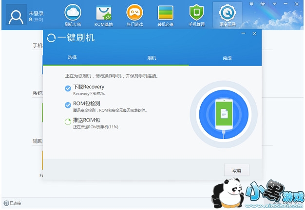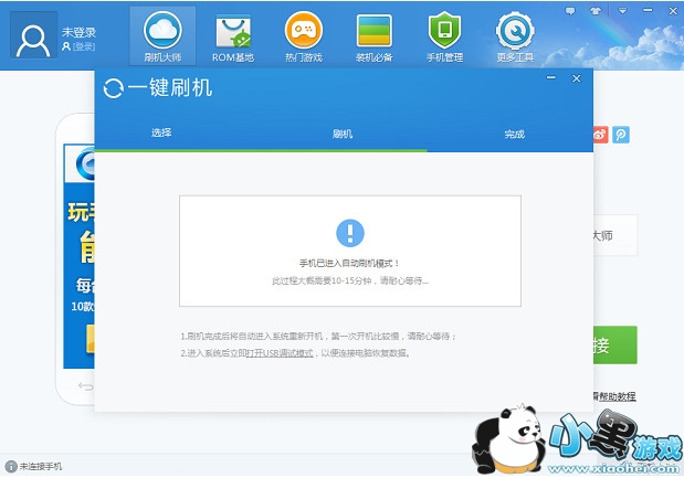 2、然后我们下好刷机包后,点击一键刷机,就可以进入到自动刷机状态了