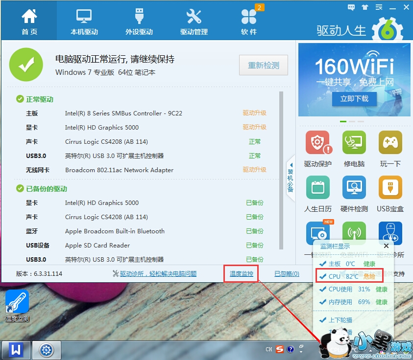 夏天到了,天气越来越热,即使在空调房,您是不是都感觉电脑热的发烫呢?驱动人生6.3.31.114版本新增温度检测功能,让您一秒就能得知电脑的温度,并及时作出对应的降温措施。
