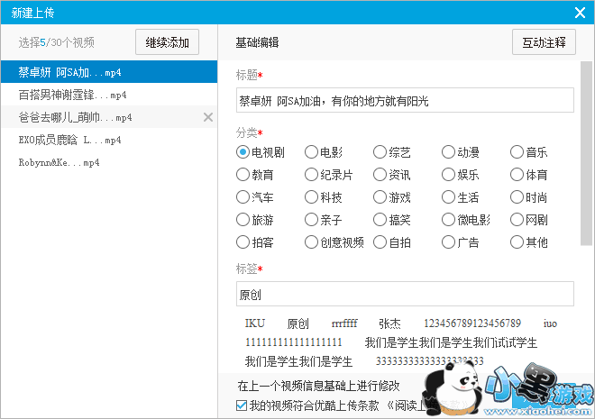 点击任务后方的“编辑”按钮或点击“批量编辑”可进入高级上传模式,支持编辑标题、分类、简介等视频信息。
