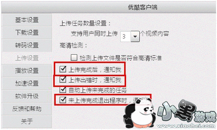 温馨提示:进入选项-上传设置页面中可选择勾选以下通知选项后,即可得到相应气泡弹出提示,以便及时了解任务状态。若您选择不勾选以下通知选项,则不会弹出提示。