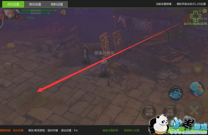 3.鼠标左键在游戏界面的虚拟按键上单击,并设置一个按键。