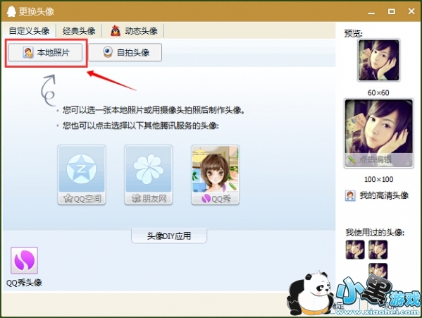 3.点本地照片,然后在弹出的对话框中双击选择刚下载好的透明头像。