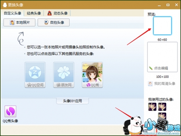 4.选择透明头像后右边会有2个尺寸,一个是60*60,另外一个是100*100,在此我们选择60*60这个尺寸,因为100*100的小编试过了头像会是黑色的。切记哦。最后确定即可。