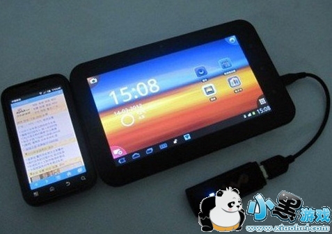 再举个例子,比如我们一般购买的平板电脑,仅支持Wifi无线上网,如果我们要实现3G无线上网怎么办?其实也很简单,只要我们平板电脑支持OTG功能,就可以通过OTG数据线将平板电脑与USB 3G网卡连接起来使用,至此就实现了平板电脑也能实现3G无线上网了,如下图: