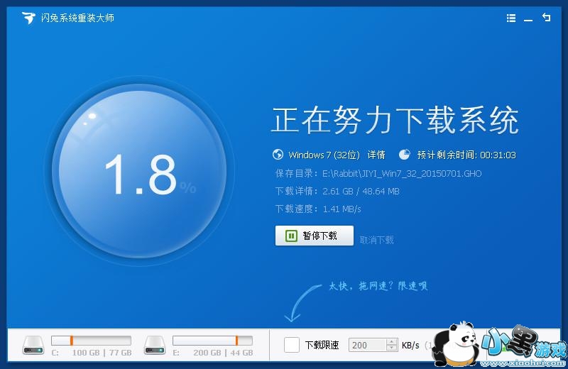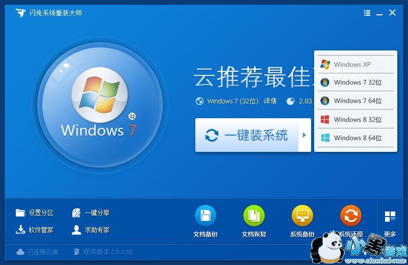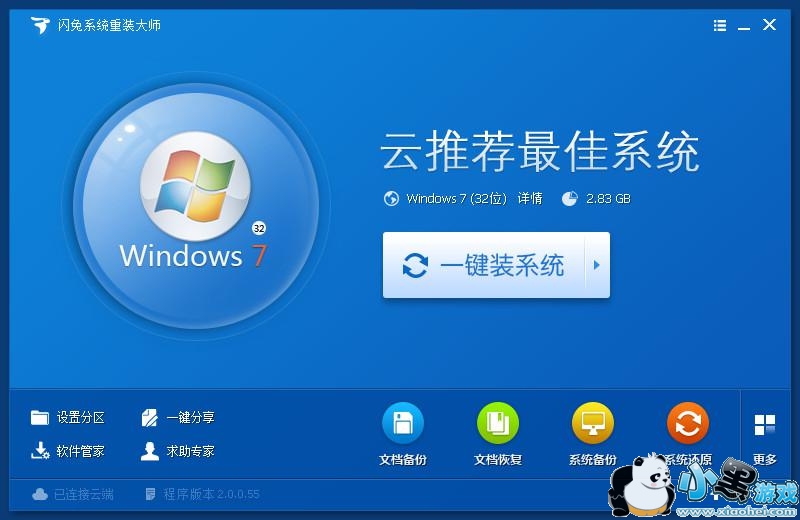 闪兔系统重装大师是一款简单好用的系统重装软件,闪兔系统重装大师软件具有自动识别电脑硬件并智能云匹配最佳系统版本。不管安装XP、Win7还是Win8系统,都能实现一键重装系统Win7,一键重装系统Win8,轻松解决电脑系统重装问题。闪兔系统重装大师还提供一键备份还原工具,帮助用户备份或者还原系统Ghost,保障数据无忧!闪兔系统重装大师、闪兔一键备份还原为你的电脑系统保驾护航。