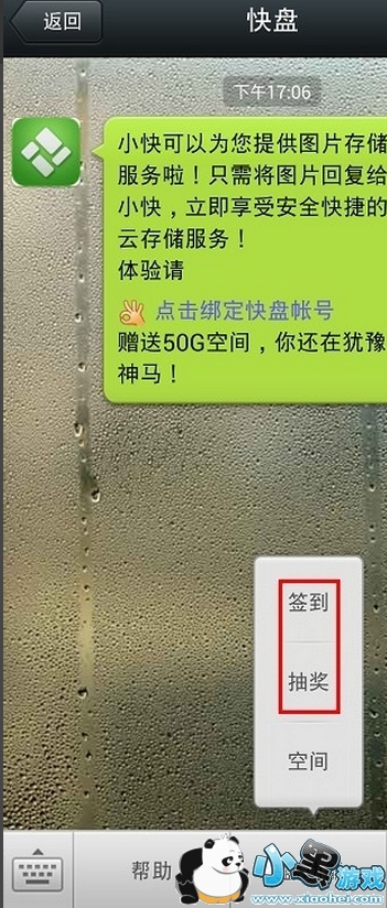 输入快盘帐号和密码,绑定快盘帐号,您还可以点击“签到”、“抽奖”来获得更多快盘空间。