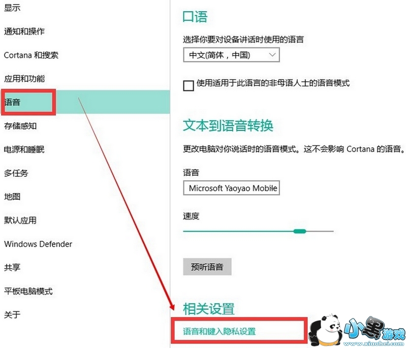 如果出现的开启按钮是灰色的,那你不要性急,再次回到系统设置里,点击语言选项,在弹出的窗口中点击最下面的“语音和键入隐私设置”,如图所示: