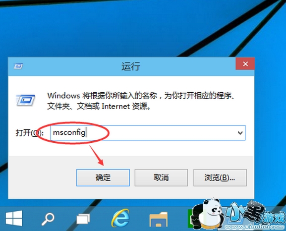 在Win10系统里同时按下”Win+R“组合按键,在打开的运行对话框里输入命令:msconfig,然后点击确定,如下图所示。
