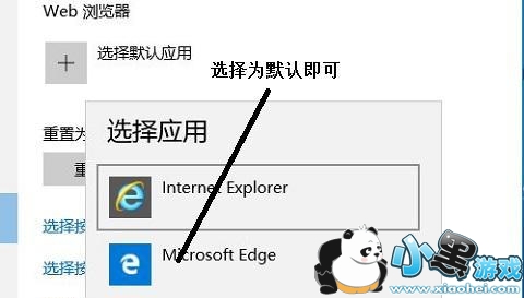 4、点击“选择默认应用”,如下所示我们会看到很多浏览器了,选择Microsoft Edge 设置成默认浏览器: