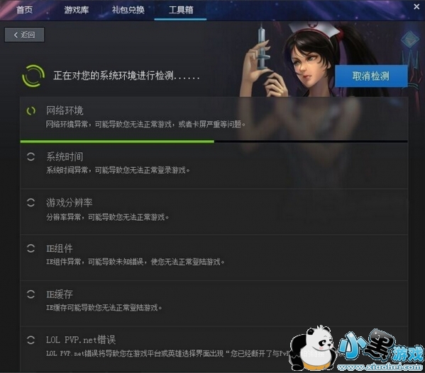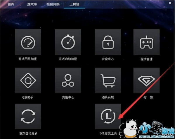 点击左上角的工具箱会看到正下方有一个LOL修复工具。点击进入。