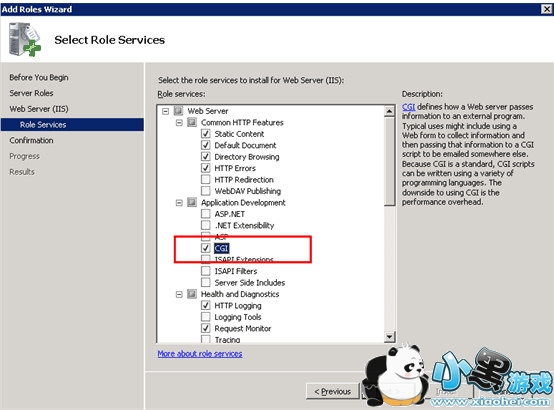 3. 点击下一步,在选择角色服务时,勾选“CGI”,如下图所示
