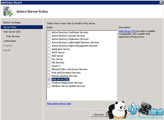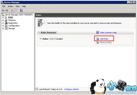 2. 点击“Add Roles”添加服务器角色,在这里选择Web Server(IIS),如下图所示