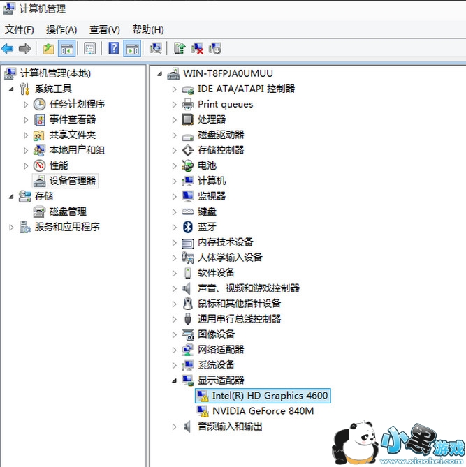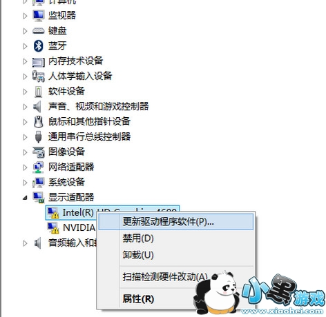 2、我们打开计算机管理——设备管理器——显示适配器点击“更新驱动程序软件|“