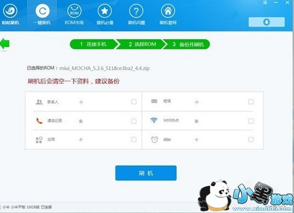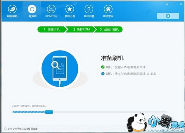 第四步:小米平板刷机开始,点击“刷机”刷机开始。