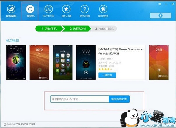 第三步:选择下载好的小米平板刷机包,平板连接成功后,选择下载好的小米平板刷机包。