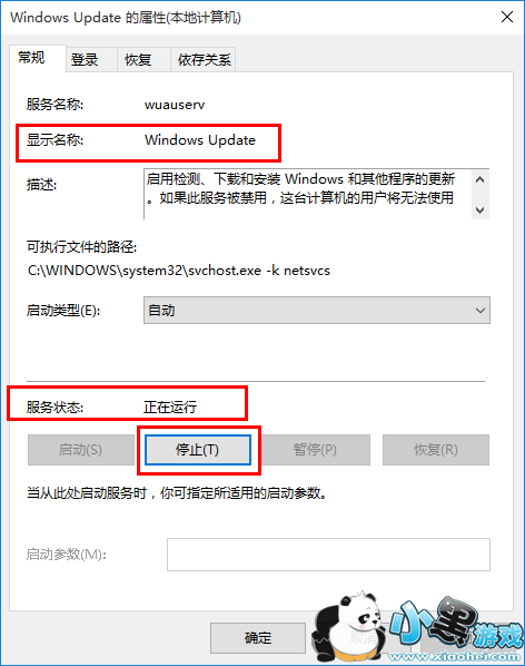Step2:找到“Windows Update”服务右键选择“属性”,查看当前服务状态,若为“正在运行”,点击“停止”,然后确认服务状态为“已停止”;