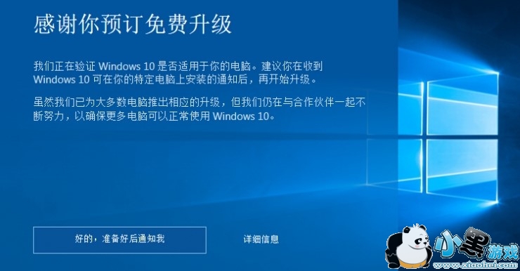 准备工作:备份好您的重要数据,确保网络畅通,为电脑提供稳定的供电,当然必不可少的是已经预约了Windows 10的升级。预约成功的用户右下角通知区域会有下图的图标。