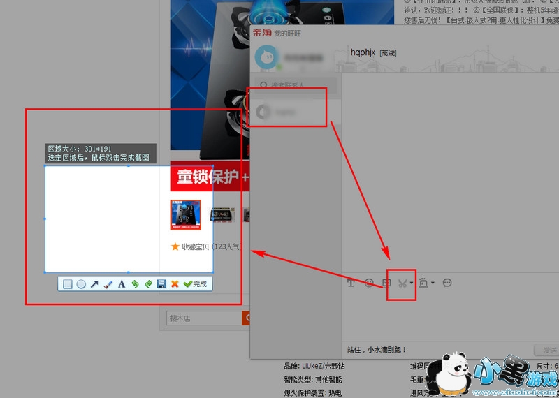3、打开点击你需要咨询的店主,点击截图按钮,就可以发送图片了
