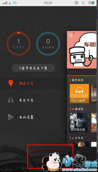 3、用户可以在车听宝的手机客户端中下载自己喜欢的内容,上车后进行同步,将内容同步至车听宝。点击橙色按钮就可以同步