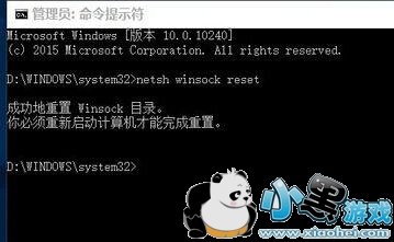 然后按住键盘组合键win+x,选择命令提示符(管理员),在提示框输入netsh winsock reset,回车