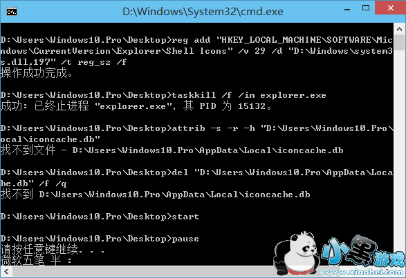 attrib -s -r -h “%userprofile%/AppData/Local/iconcache.db”