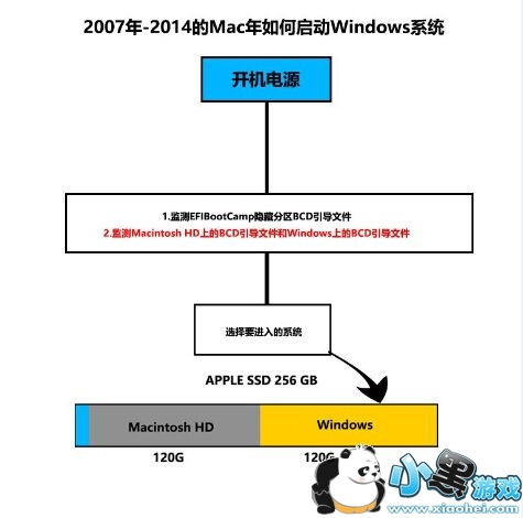 但是,从2015年开始,Mac不再支持单项MBR方式引导的系统(Windows XP),所以放弃了MBR启动方式,改而采用纯GPT磁盘启动,也就是说,2015年的Mac设备少了一个搜寻全盘BCD文件的指令,只会读取EFI磁盘的启动BCD文件。