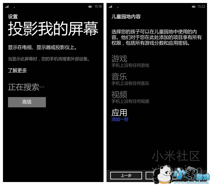 Win10版小米4支持将手机屏幕直接投射到电视或者别的显示设备,在玩游戏或者使用手机内的Office时特别方便。Win10版小米4中的儿童园地类似于MIUI中的访问限制,你可以下载一些热门游戏接着添加到儿童园地,当家里的小孩玩手机时可以打开这个功能,很贴心有木有!