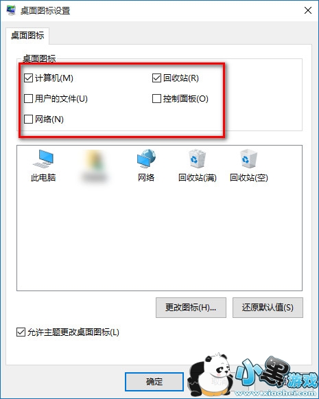 桌面图标这一项里面勾选你觉得有用的图标,然后再点击【确定】