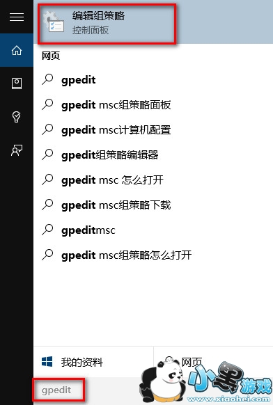 2、 如果你使用的是Realtek audio声卡,当你遇到0x000005b4错误提示时,可通过修改组策略的方式修复。点击任务栏搜索按钮,输入gpedit,回车打开组策略编辑器。