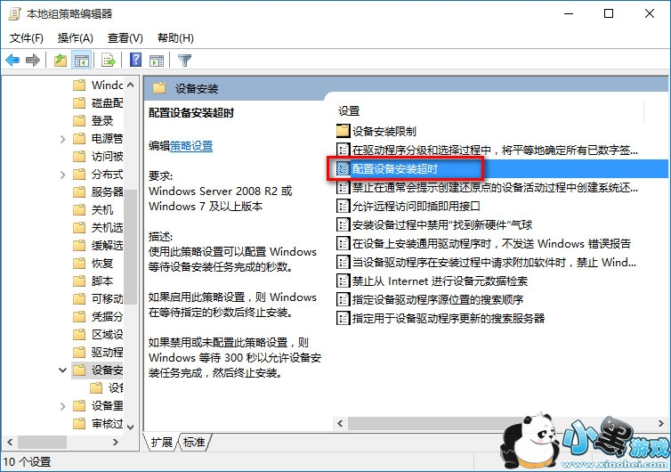 ▲ 在右侧找到“配置设备安装超时”,双击打开设置窗口。