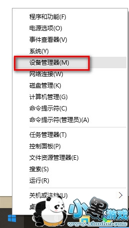 在左下角开始菜单上右键单击,选择“设备管理器”。