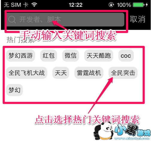 点击搜索按钮后进入如下界面,点击热门关键词搜索或手动输入搜索,即可进入下载页面。