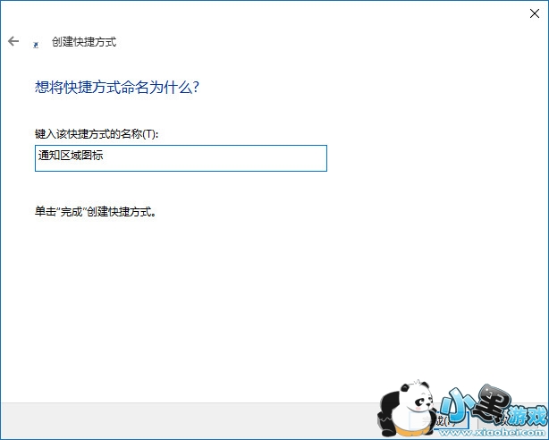 3、点击下一步后,给该快捷方式命名,可以为“通知区域图标”
